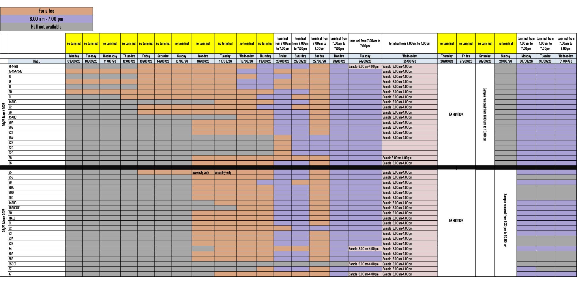 For dismantling days, use of the Terminal area will be required on 30.03, 31.03 and 01.04, from 07.00 to 19.00.
