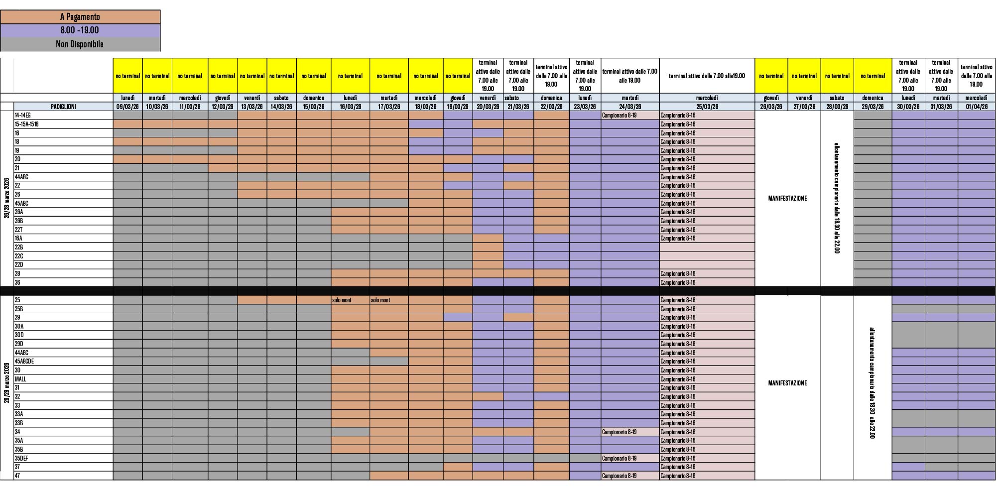 L'area terminal sarà attiva dal 20.03 all' 1.04 per il periodo di allestimento, dalle ore 07.00 alle ore 19.00.