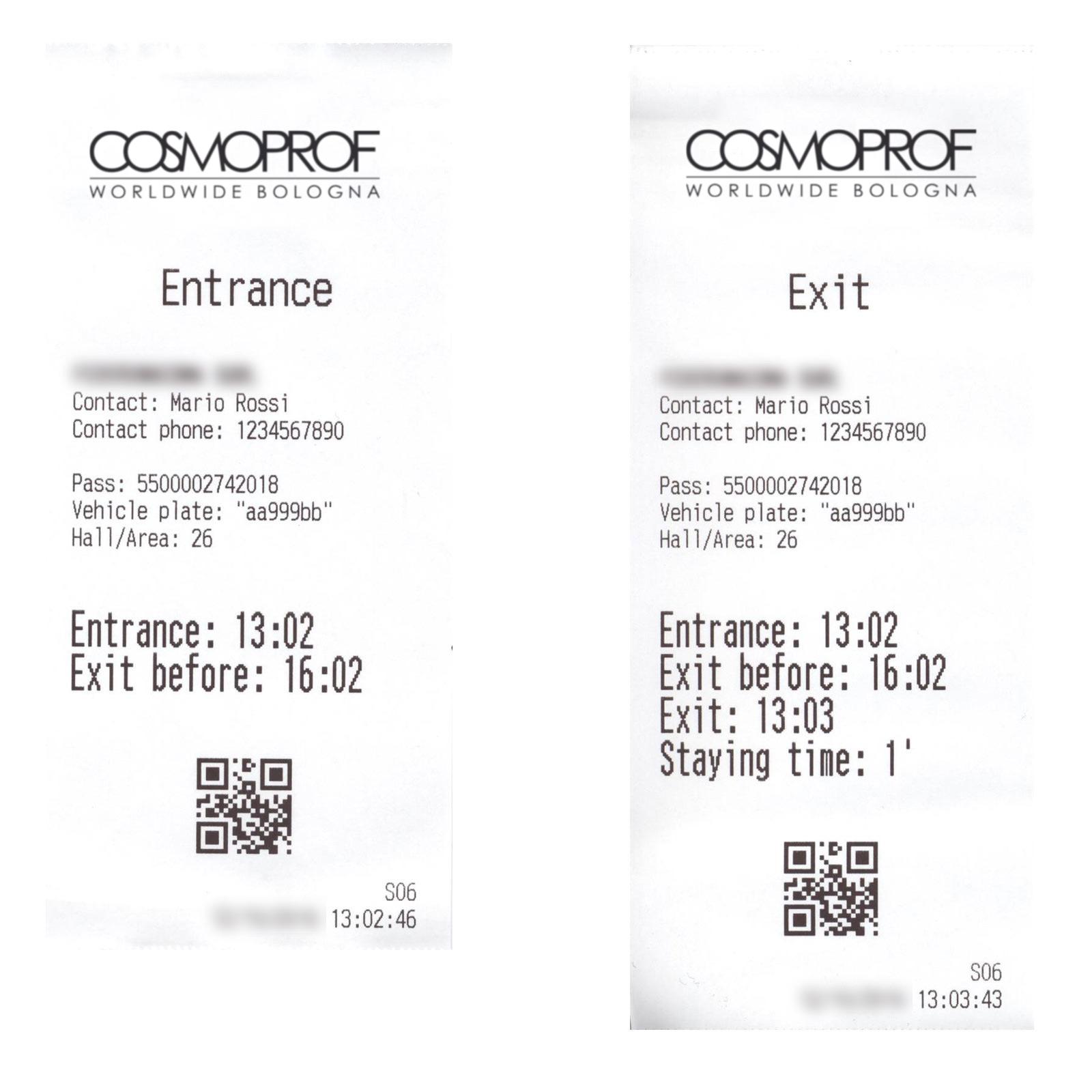 Al momento dell’uscita dal quartiere fieristico, gli addetti provvederanno a leggere il QR Code riportato sullo scontrino: